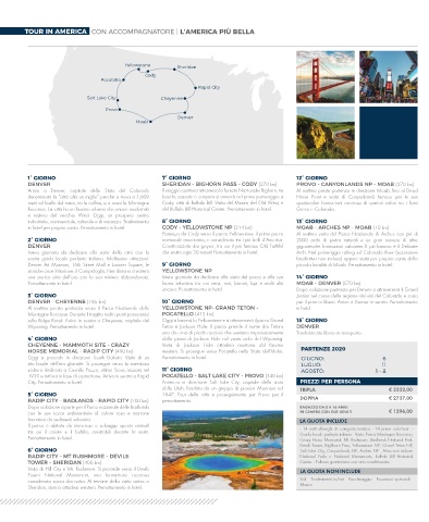 Arrivo a Denver, capitale dello Stato del Colorado Il viaggio continua attraverso la foresta Nazionale Bighorn, tra Al mattino presto partenza in direzione Moab, fino al Dead